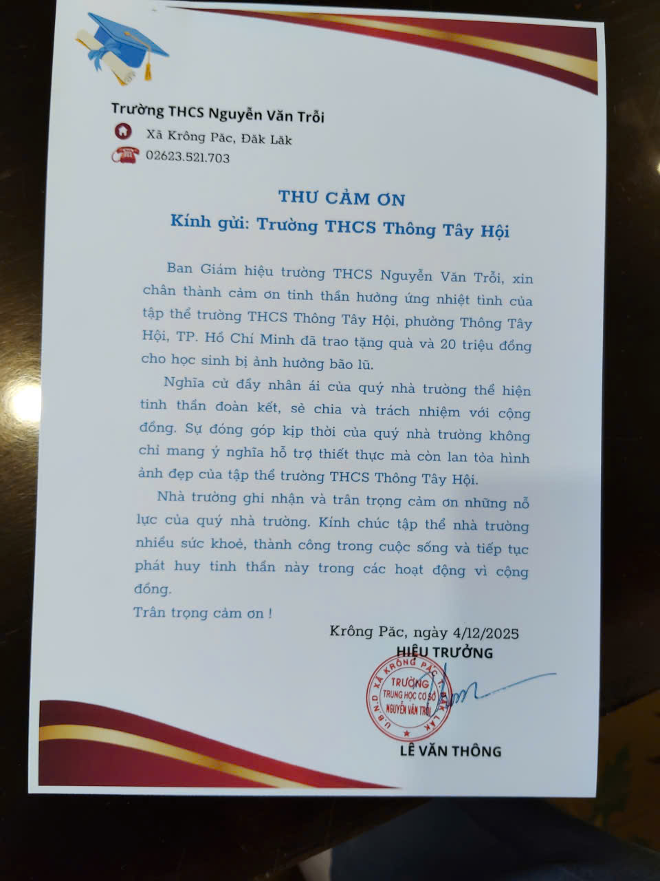 2 Thông báo kết quả vận động ủng hộ đồng bào lũ lụt  Công khaiTrường THCS Thông Tây Hội10-12-2025